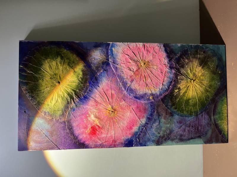 | 日式燈罩 | 運用花葉移印的平面作品完成立體的燈罩 |